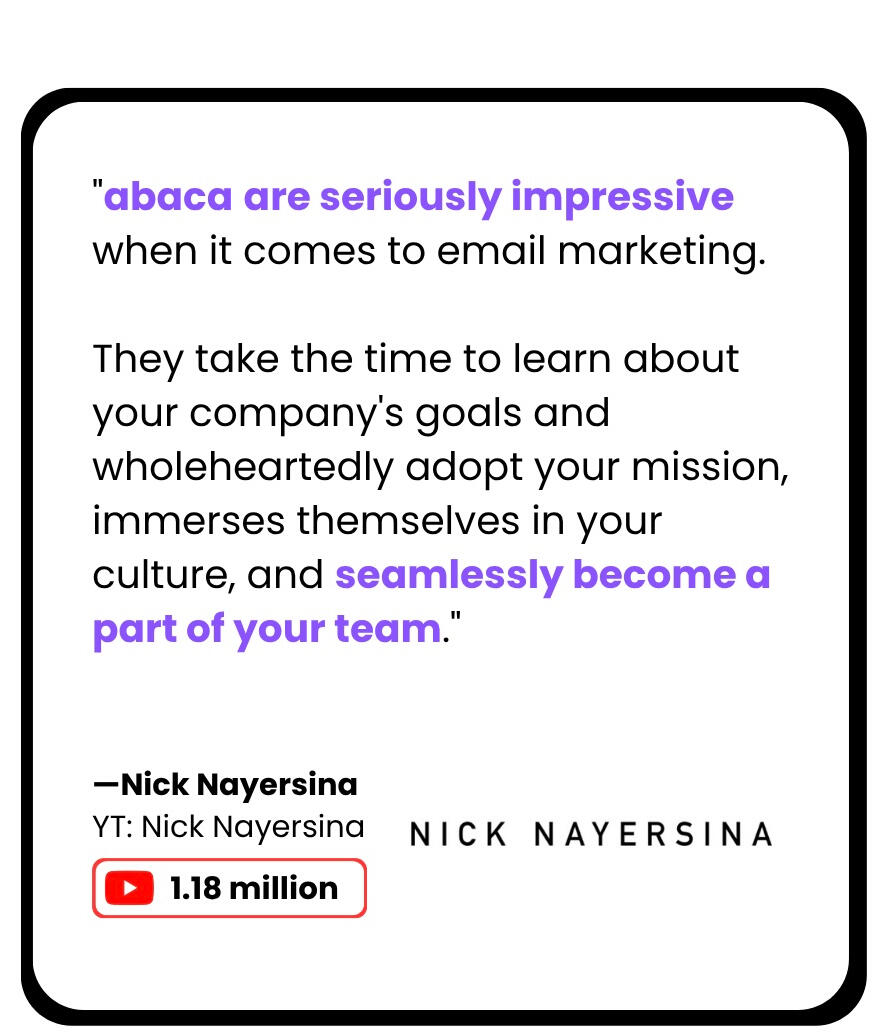 Relying on social media for sales leaves you at the mercy of their algorithms.Instead, abaca helps you nurture and sell to your fans directly where 79% of Americans check daily - their inbox.